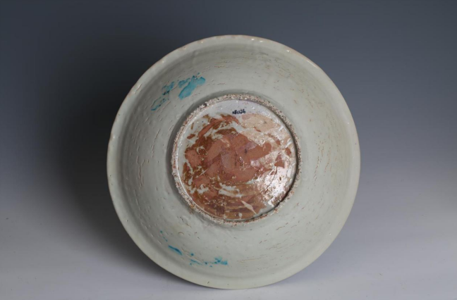遗址特点:该文物口径34.2厘米 底径16.0厘米 高7.6厘米。瓷盘为敞口,口沿微折,圆唇,浅弧腹,内直外斜式矮圈足。灰白胎,施白釉,足、底粘砂。口沿上红彩双圈纹,内用黑、蓝彩绘山水楼阁图案。腹部绘星宿、岛屿、海涛、帆船、飞鱼、麒麟等图案。盘底画24向位罗盘,中央是简体阴阳太极二重圈,圈内写有“天下一”字样。