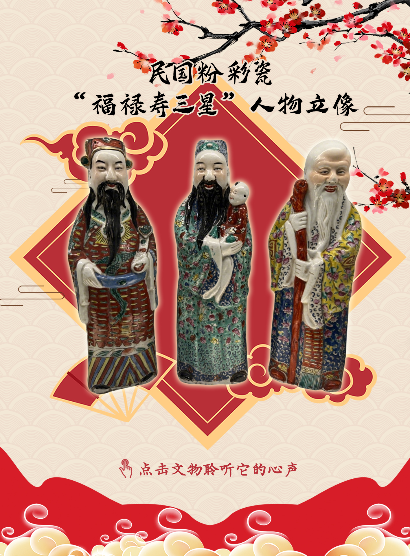(三)民国粉彩瓷“福禄寿三星”人物立像