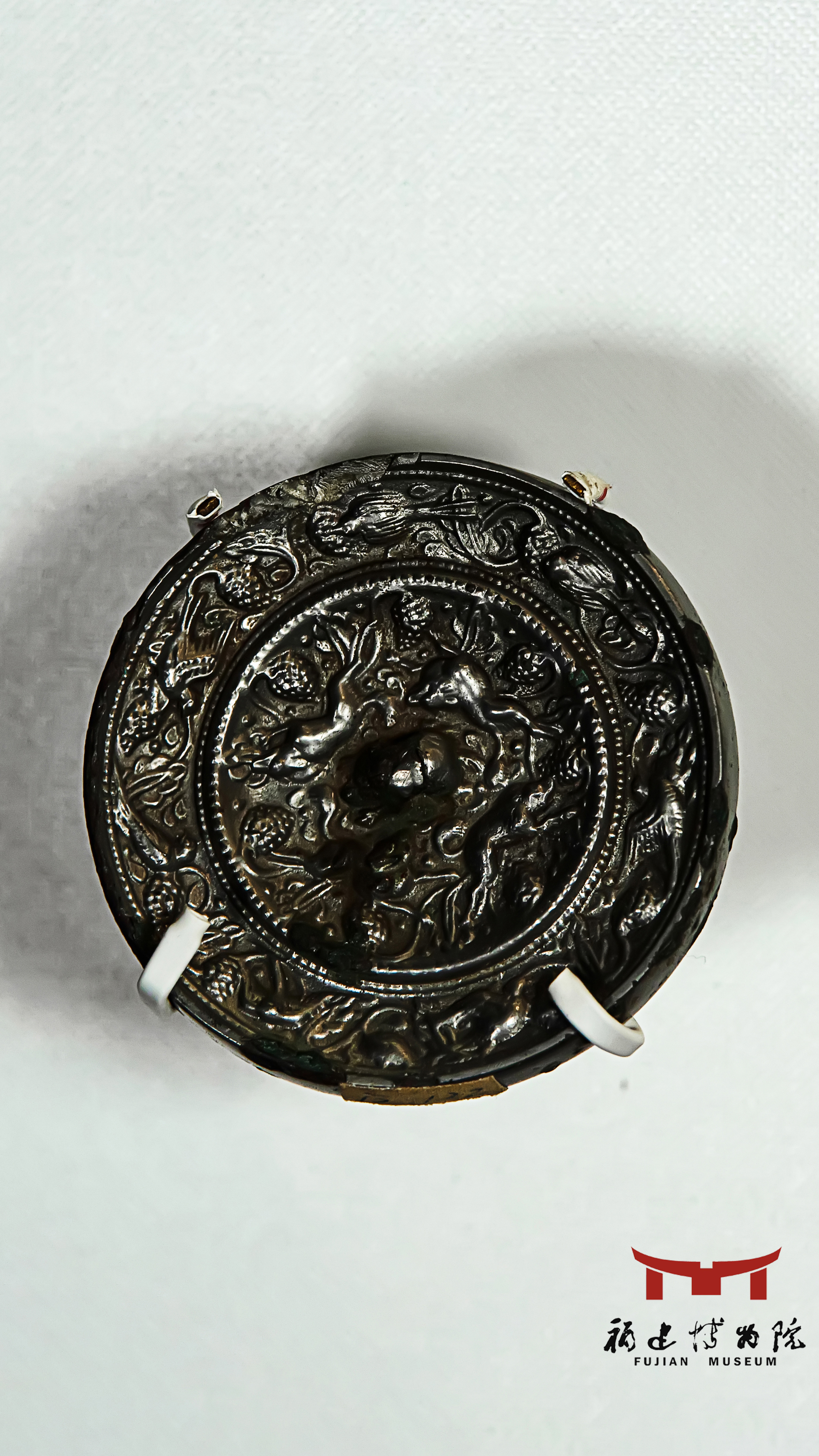 那么,唐代的镜子们都长啥样呢?福建博物院收藏有一组唐代铜镜,是唐代铸镜水平的代表之作。光听名字你就能感受到扑面而来的大唐盛世之美:八弧双鸾对舞喜鹊衔绶纹铜镜、海兽葡萄纹铜镜、珍禽瑞兽葡萄纹铜镜等等。