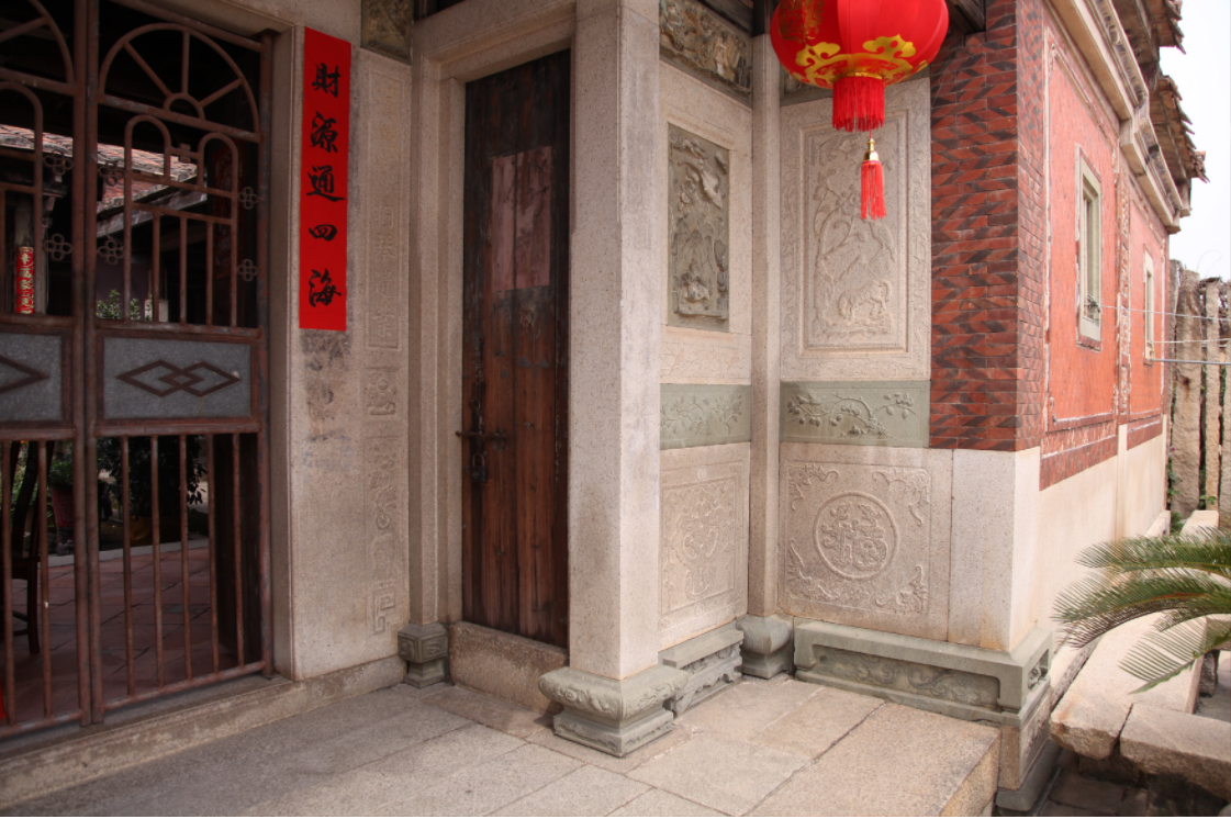 ——闽南人爱把喜庆的红色,砌成古厝,古厝因此处处是红“福”