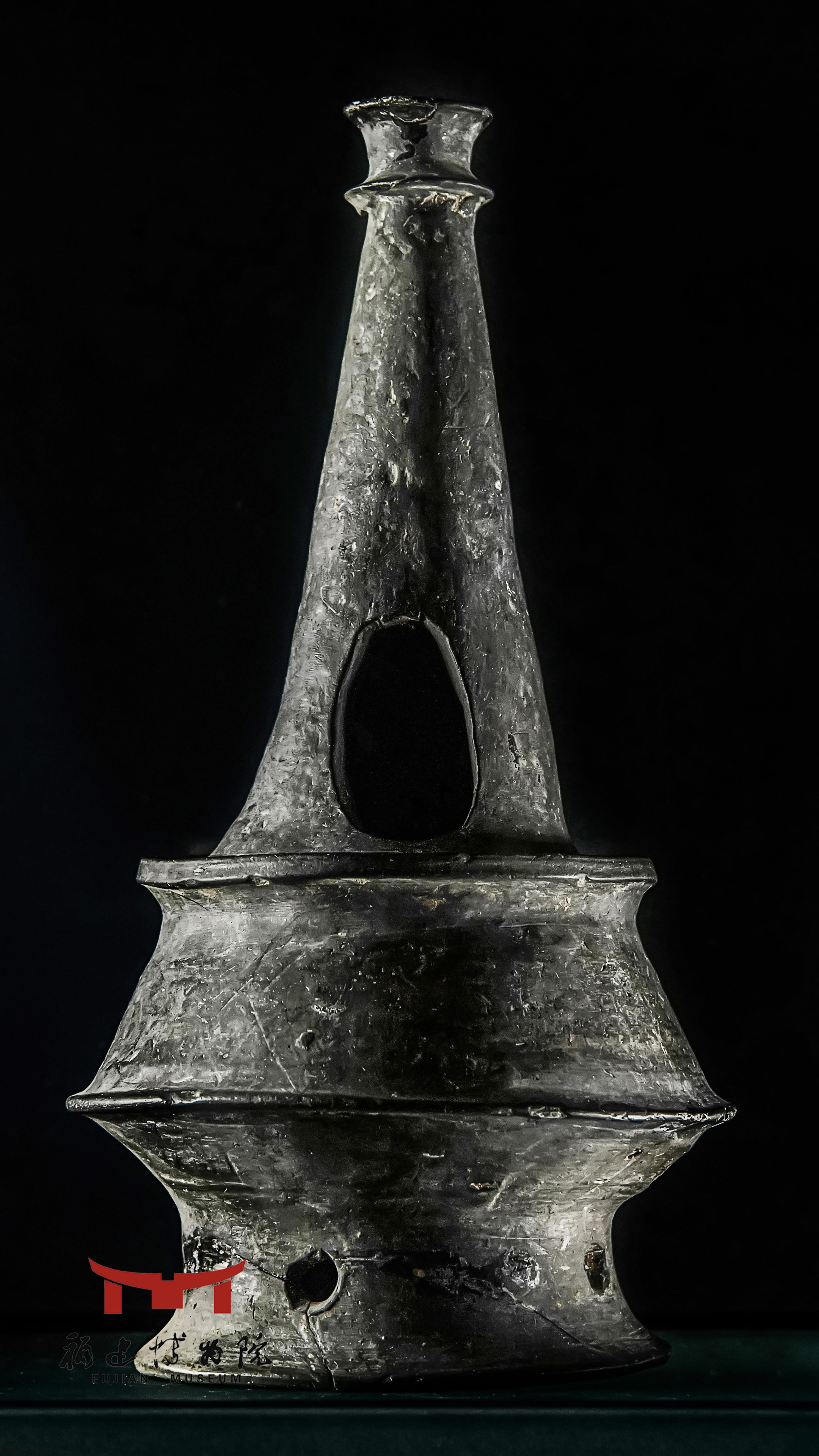 灰陶塔式壶出土于闽侯昙石山遗址,现收藏于福建博物院。昙石山遗址位于闽侯县城近郊,闽江下游北岸一处低缓小山丘上,是新中国成立后福建省内最早发现并进行科学发掘的原始社会晚期人类居住遗址之一。以其命名的“昙石山文化”是我国东南沿海地区最早被认定、最具代表性的新石器时代晚期文化之一。