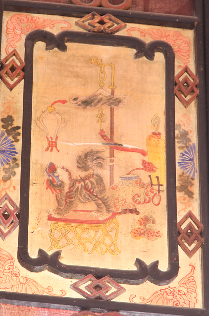 福建民俗博物馆收藏有一件三级文物——清木雕人物博古图宫灯,高80厘米,直径60厘米,云角形,共六面镶框制成,用绢布作底,绘有人物故事、博古图案、卡子花纹等,优美别致,装饰华丽。