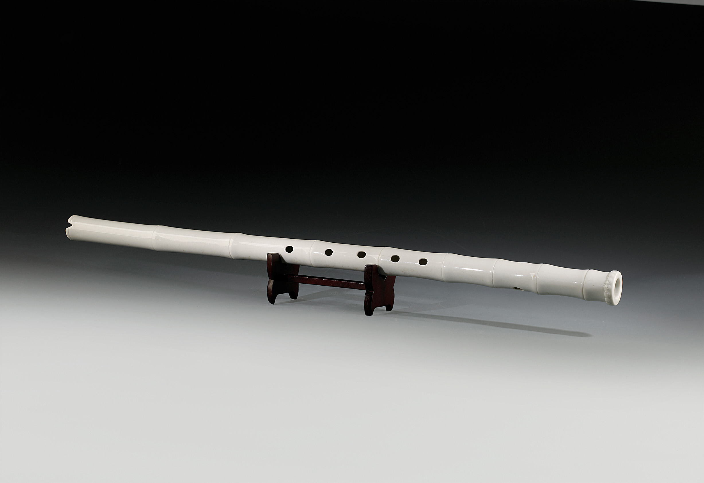 箫一般用竹子制成,最珍贵的是玉箫,但有一种箫堪比玉箫,有着“凝脂冻玉总不如”的气质,这就是德化瓷箫,早在明代就闻名于世。清初陆廷灿《南村随笔》记载:“德化瓷箫,色莹白,式亦精好,但累百枝无一二合调者。”以白瓷制箫,典雅悠扬,无以言表。