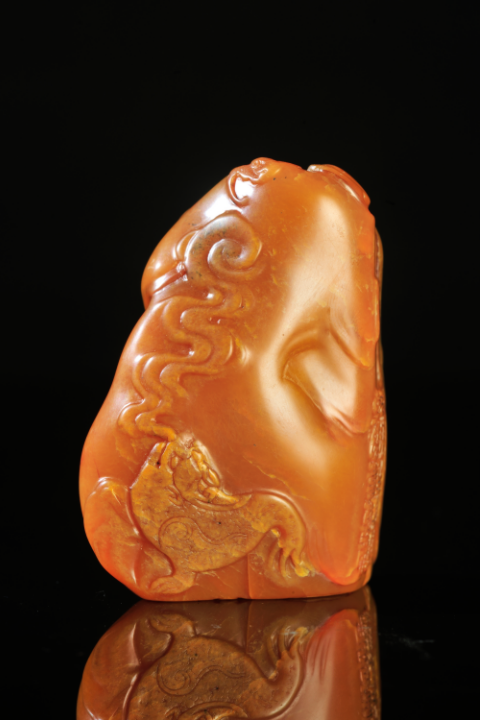 寿山石产自福州市北郊寿山村,是中国四大印石之一。田黄石是寿山石中的瑰宝,俗语说:“黄金易得,田黄难求”。田黄石肌理细密,温润可爱,似珍珠光泽,被视为“印石之王”,因其独石分散,无脉可寻,稀有可贵。田黄冻石更是田黄石中的最上品,似凝固的蜂蜜,极为通灵澄澈,是藏家的至爱。