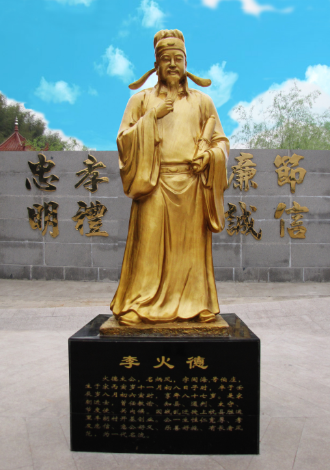 李火德是唐高祖李渊第二十八代孙,但到他这一代,只是寻常百姓。时值客家先民大举南迁,李火德随父亲举家从江西石城迁居福建宁化石壁。由于石壁人多地少,加上战乱不断,父亲李珠动员儿子们外迁,并写下“继先续后,根枝一处,绵远世泽,举祖流芳”的纸条交给儿子们。宋末,李火德和哥哥木德沿汀江来到上杭丰朗,“目其山秀土腴,民淳俗美”,于是在丰朗定居下来。不久,哥哥木德继续外迁,李火德留在丰朗,开枝散叶。