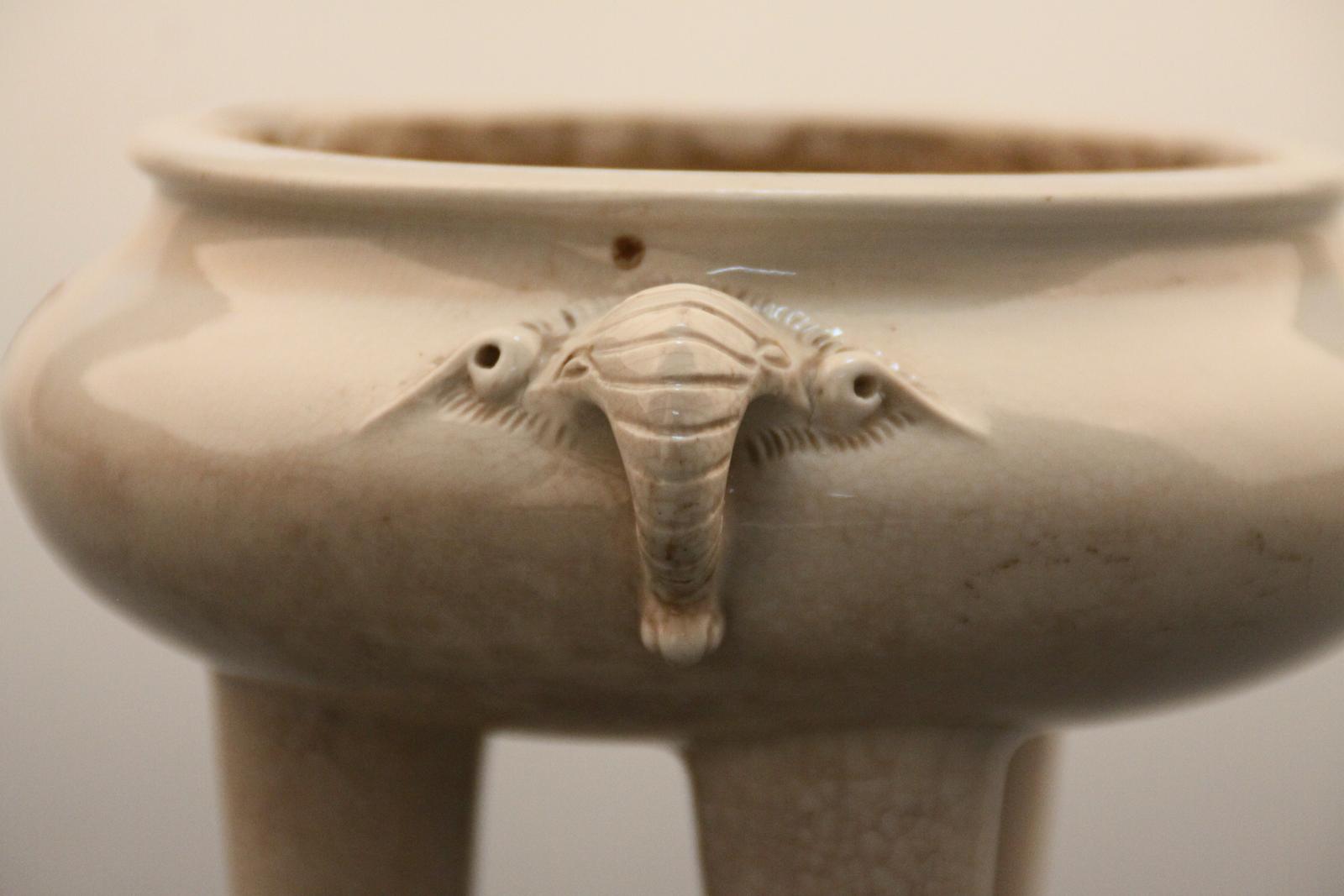 【南靖县博物馆】清漳窑米黄釉双象耳三足瓷炉