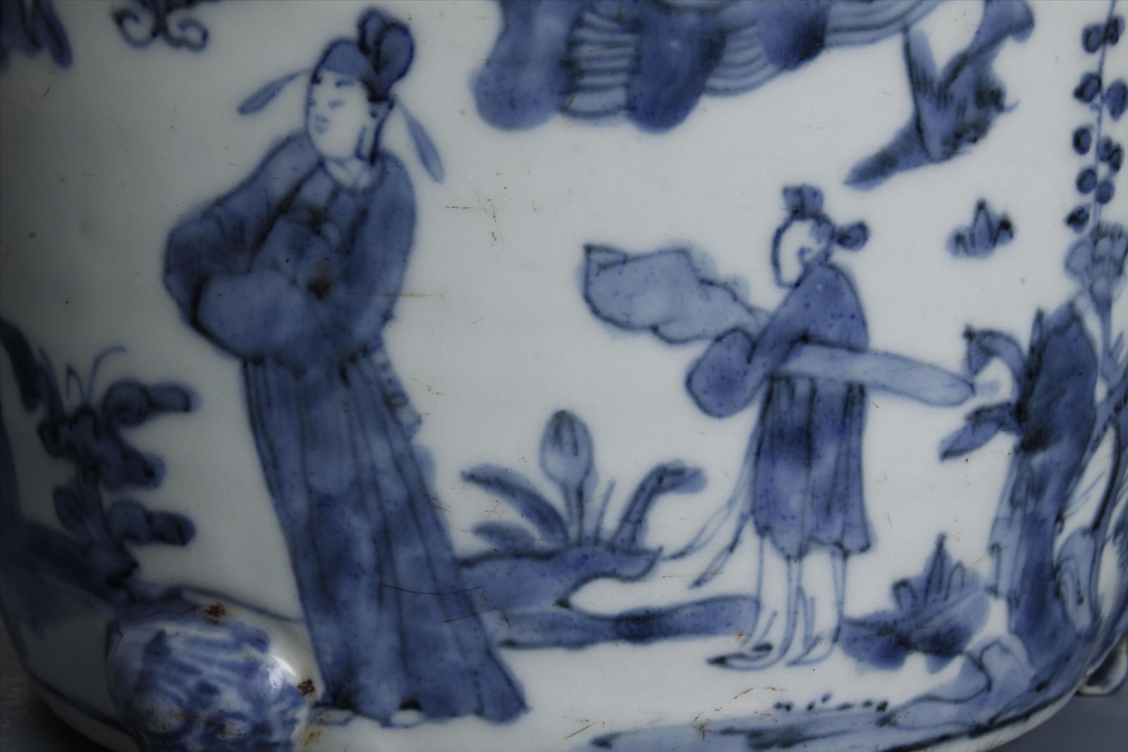 【漳州市博物馆】明漳州窑青花人物纹筒形瓷三足炉