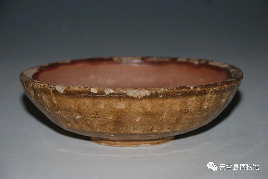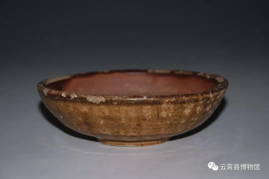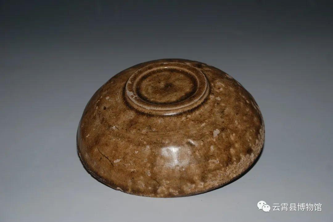 瓷器,宋,旧藏。口径16.8厘米,底径7. 8厘米,高7厘米。碗敞口,口以下渐内收,弧腹见火石红,口沿凸唇,圈足,器形标准,釉色青中带黄褐色,釉质干涩。灰白色胎,胎骨坚硬,品相完美。内外施青釉,足底及部分足墙露胎。腹部留有支垫痕8个,为覆烧。凹底中间有一平凸面,底沿外沿斜切,工艺较粗糙。器物保存完整。来源:云霄县陈岱镇南山出土。现收藏于云霄县博物馆,为馆藏三级文物。