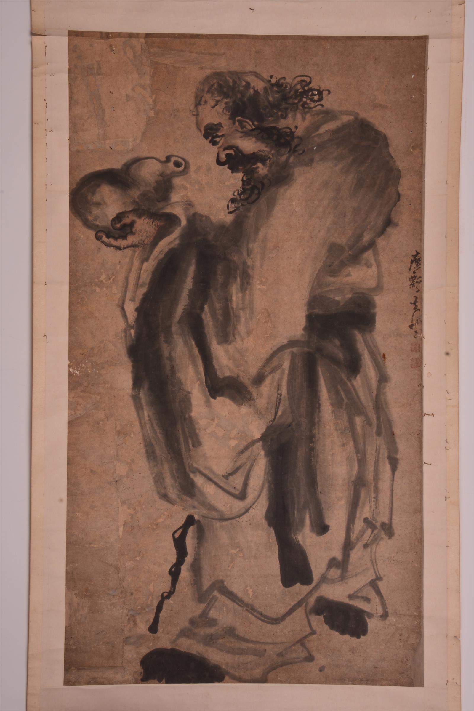 文物名称:清上官周墨绘淡褐设色寿星图立轴