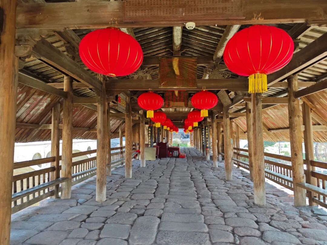 我的童年,大半都萦绕在这座廊桥间。幼时总偎着父亲,闲坐桥廊木凳,掌心轻抚丹霞桥面,凹凸石纹粗糙却温润,每一道沟壑都是时光镌刻的印记。十一间廊屋连绵,五十六根木柱擎天,撑起一方遮风挡雨的天地,也盛下了整个盛夏的清凉。屋檐挡板、屋脊飞檐,是眼底最灵动的景致,更是儿时嬉戏打闹的温柔玩伴。