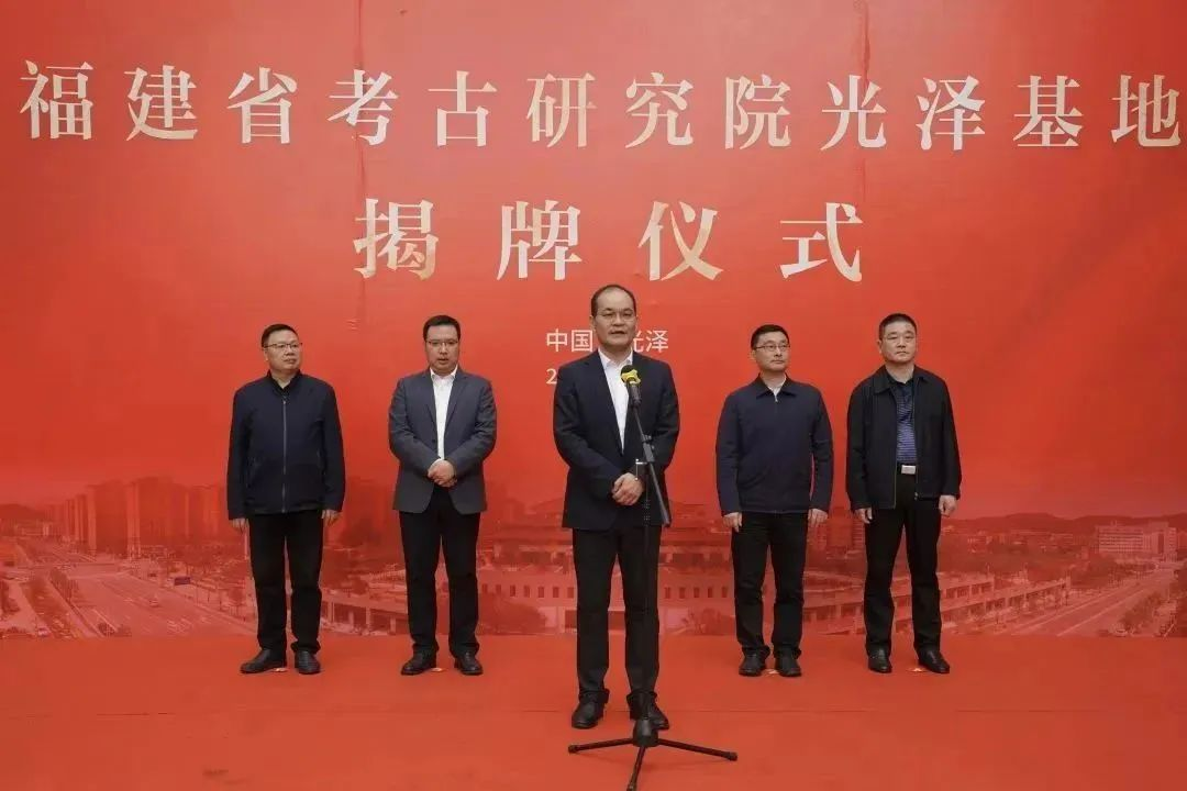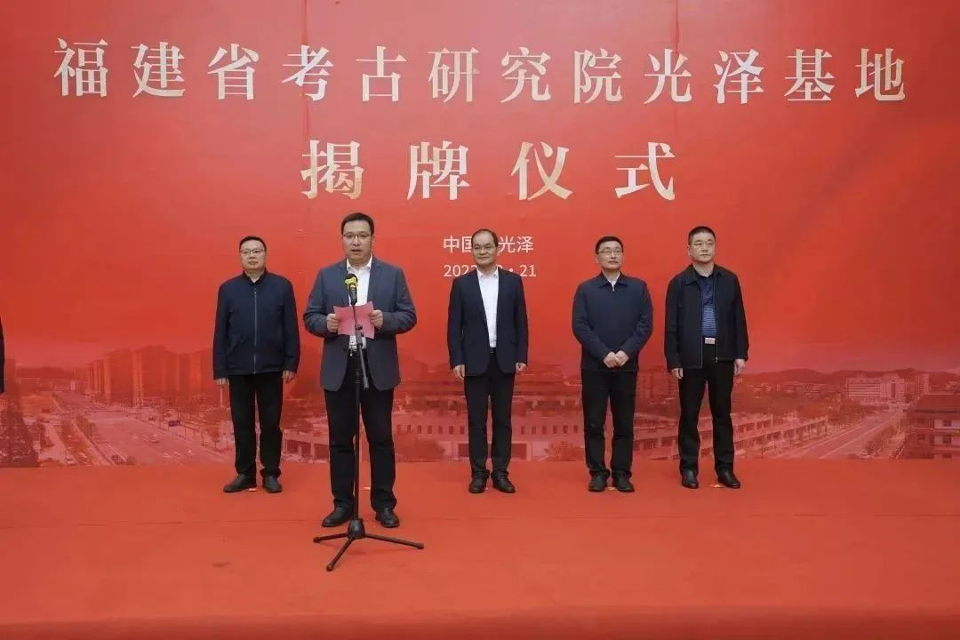 3月21日上午,福建省考古研究院光泽基地揭牌仪式在南平市光泽县举行。仪式由光泽县人民政府副县长张锦鸿主持,福建省文化和旅游厅党组成员、副厅长、福建省文物局局长、福建博物院院长傅柒生,光泽县人民政府县长王贵出席并分别致词,南平市人民政府副市长林湫、福建省考古研究院院长王永平、南平市文化和旅游局副局长廖泉义出席。