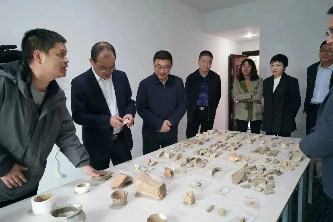 随后,由王永平院长与王贵县长共同签署《福建省考古研究院与光泽县人民政府合作建立福建省考古研究院光泽基地协议书》,傅柒生局长与林湫副市长共同为福建省考古研究院光泽基地揭牌。揭牌仪式结束后,傅柒生局长、王永平院长与张锦鸿副县长一行人前往何家潭遗址、池湖遗址进行考察调研。