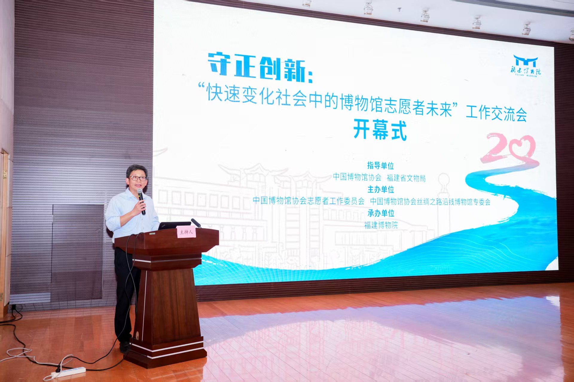 5月23日下午,由中国博物馆协会、福建省文物局指导,中国博物馆协会志愿者工作委员会、中国博物馆协会丝绸之路沿线博物馆专委会主办,福建博物院承办的“守正创新•快速变化社会中的博物馆志愿者未来”工作交流会在福建博物院学术报告厅拉开帷幕。会议由福建博物院党委书记、院长楼建龙主持。