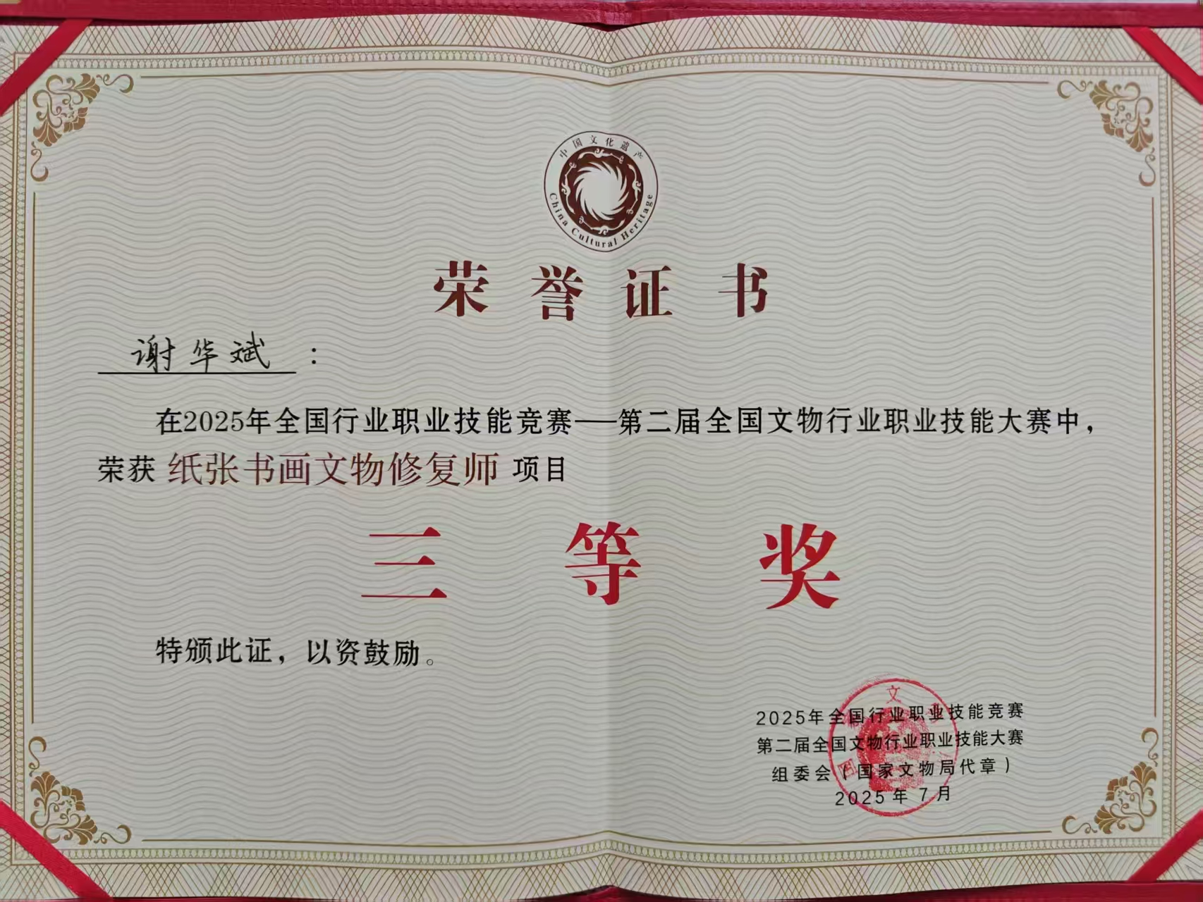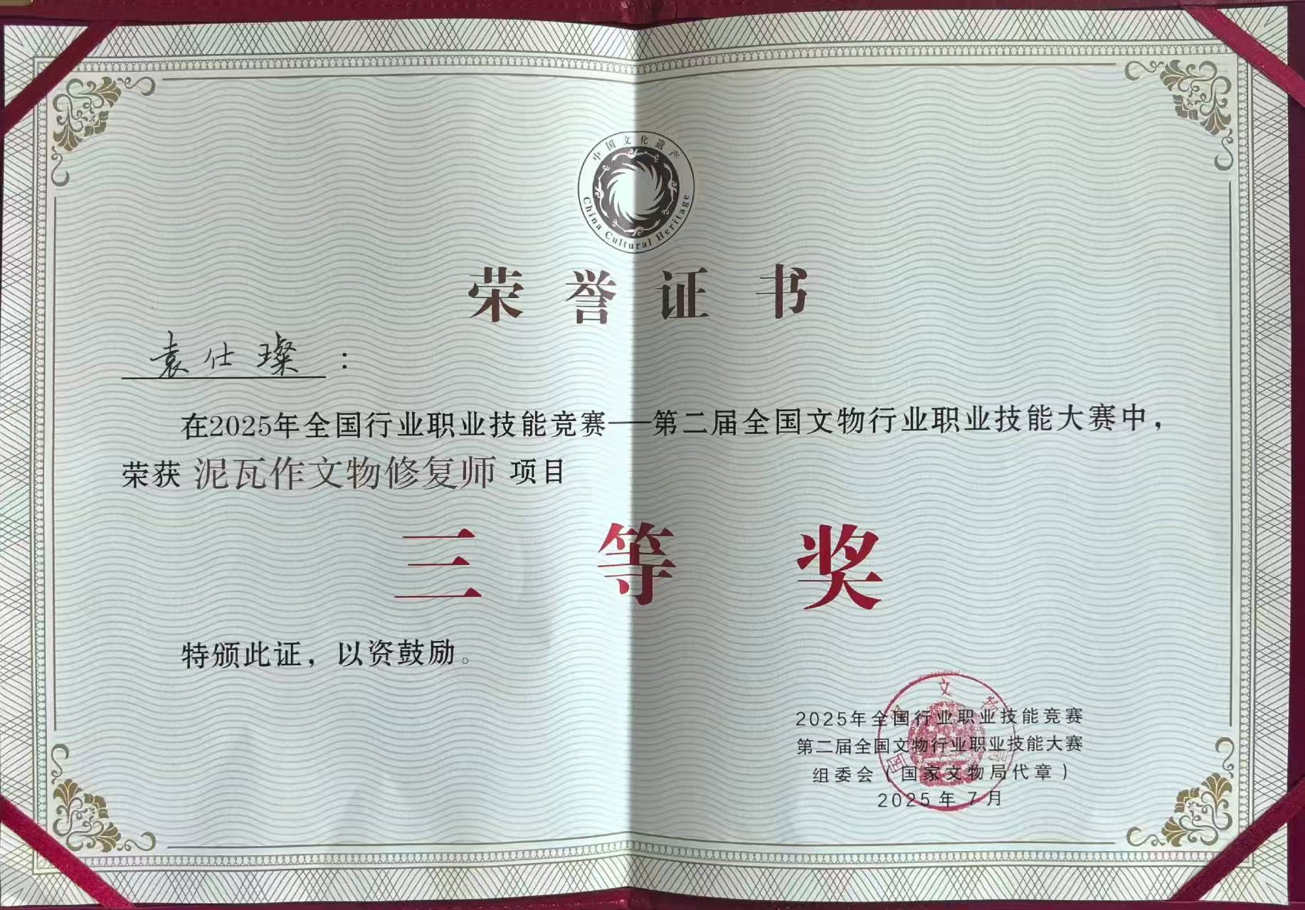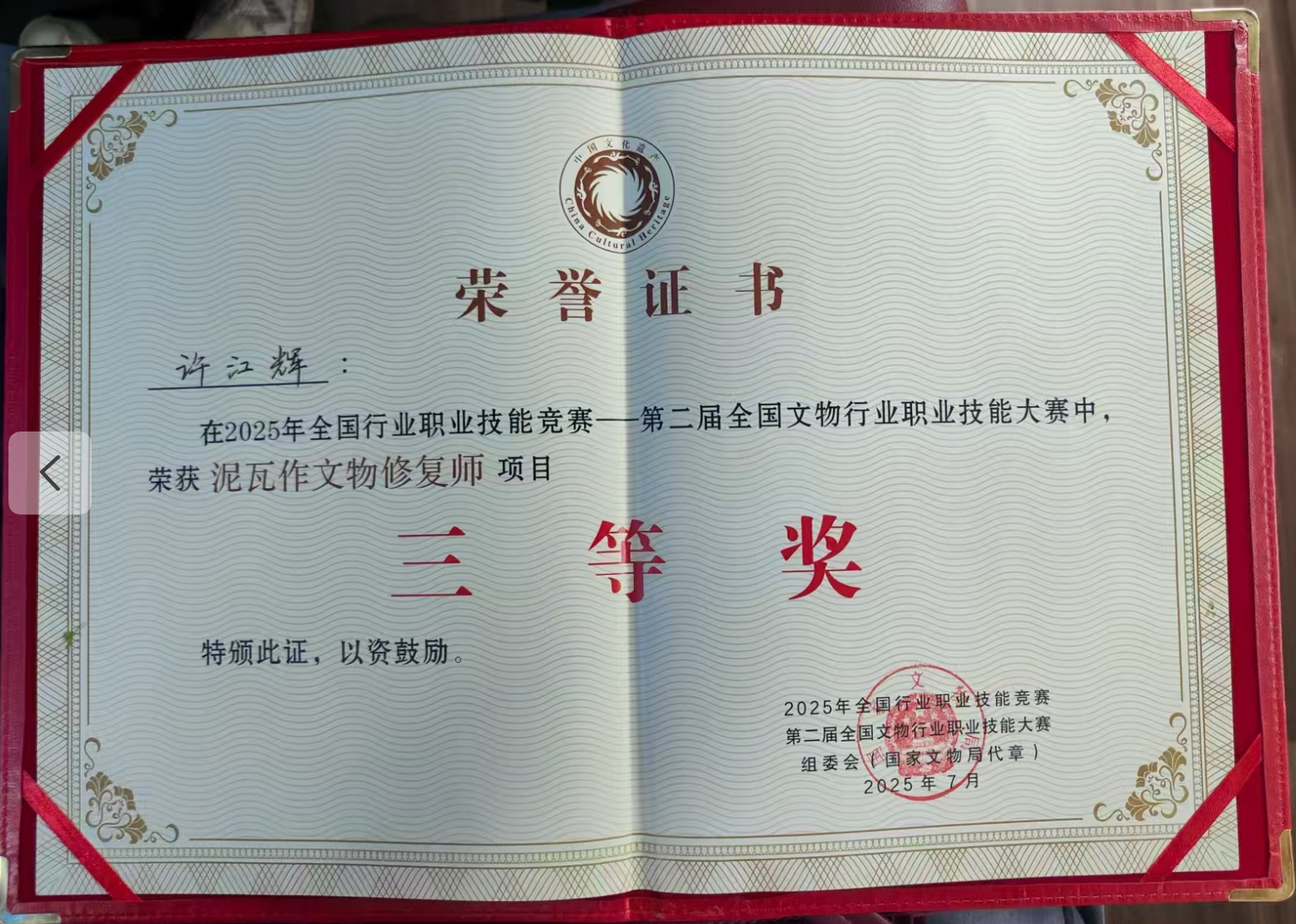 7月6日,由国家文物局、人力资源社会保障部、中华全国总工会共同主办的2025年全国行业职业技能竞赛——第二届全国文物行业职业技能大赛在四川省泸州市圆满收官。福建精心选派文物保护领域精英角逐比赛,最终在泥瓦作文物修复师项目获2个三等奖,纸张书画文物修复师项目夺得1个三等奖,实现历史性突破,创我省参赛以来最佳成绩。