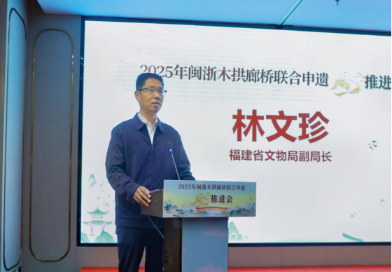 福建省文物局副局长林文珍在会上指出,闽浙两省地缘相近、文脉相通,木拱廊桥是双方共有的文化瑰宝。推进联合保护、携手申遗,既是两省的广泛共识,更是坚定的共同行动。期盼以此次会议为新起点,持续深化协作、久久为功,共同将“闽浙木拱廊桥”打造城区域协作的典范,让每一座廊桥都成为连接历史和未来、承载乡愁和文明的“活化石”。