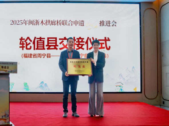 10月23日,2025年闽浙木拱廊桥联合申遗推进会召开。会议由福建省文化和旅游厅、浙江省文化广电和旅游厅、福建省文物局、浙江省文物局指导,宁德市文化和旅游局、周宁县人民政府共同主办。闽浙两省文物局负责同志、相关领域专家学者以及两省七县代表参加会议,旨在进一步深化闽浙两省七县廊桥保护和联合申遗领域的协作,共同推动木拱桥传统营造技艺传承发展。