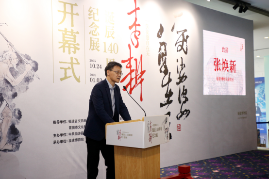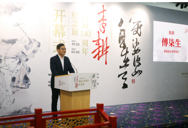 “时值李耕诞辰140周年,这场展览既是对宗师的深切缅怀,更是让博物馆文物‘活’起来的生动实践。”福建省文旅厅副厅长、省文物局局长傅柒生在开幕式上表示,福建从不缺文化艺术底蕴,但像李耕、李霞、黄羲这样的艺术大家,其价值仍需更多元的展示来让公众熟知。2018年福建美术馆曾举办李耕书画展,此次福博再续前缘,意义尤为特殊。他强调,福博作为连接过去、现在与未来的“文化客厅”,正通过这样的展览让经典艺术走出库房、走进大众生活,而李耕作品中兼具的铁线描功底、“吴带当风”的飘逸意韵,以及典雅文人气与质朴乡土感的融合,不仅是闽地文化的瑰宝,更能成为提升福建文化影响力、展示福建新形象的重要载体,为文博界、艺术界与社会同道搭建合作新平台。