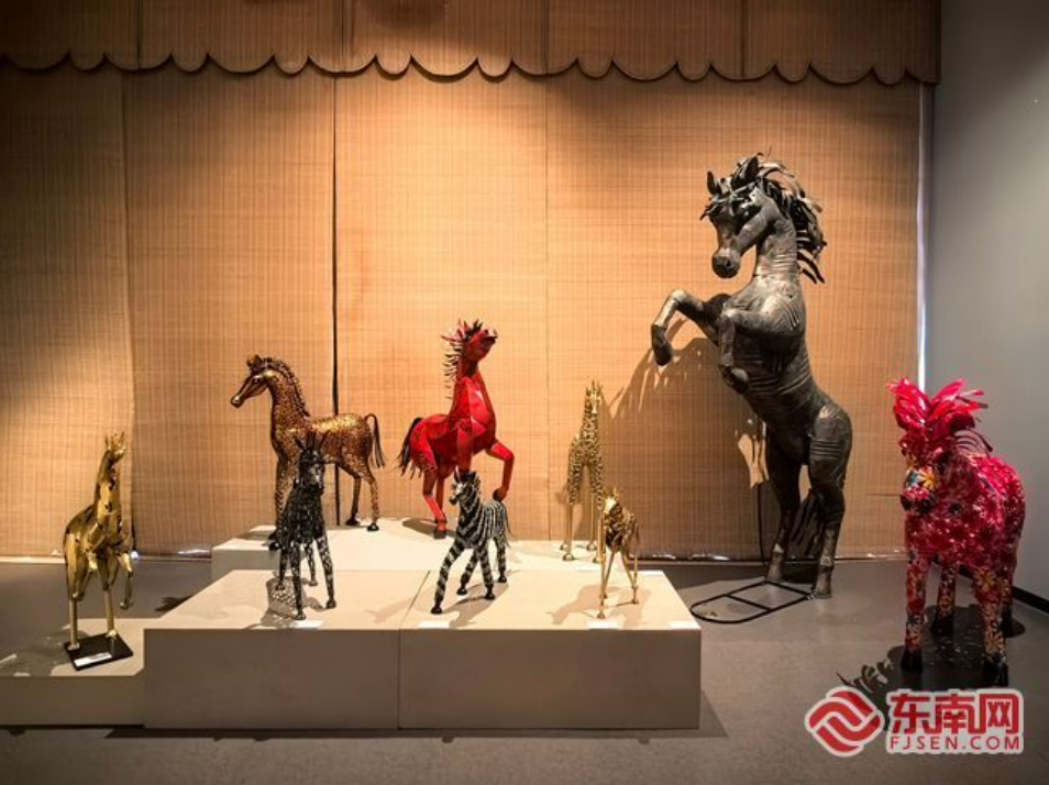 泉州藏家郭福荣此次携11件马元素藏品参展。东南网记者 谢玉妹 摄