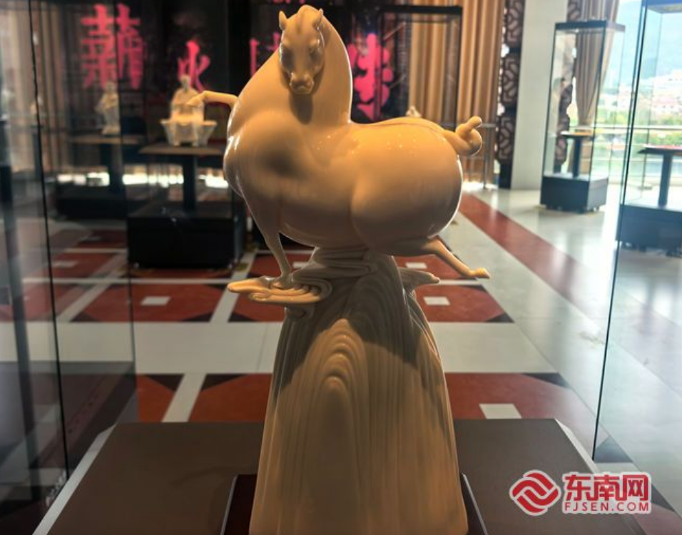 同期开展的闽台工艺美术联展,围绕马的忠诚勇毅、开拓进取精神,展出57件形态各异的精美作品,从经典的德化白瓷马塑到融入现代美学的文创产品,尽显德化陶瓷技艺的精湛与创新。据悉,2025年春节,闽台缘博物馆与泉州市德化县签订战略合作协议,以陶瓷为载体推动闽台文化传承创新。