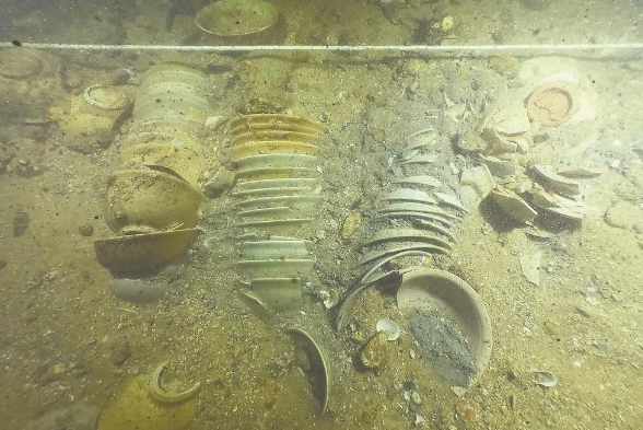 圣杯屿沉船舱内 成摞瓷器