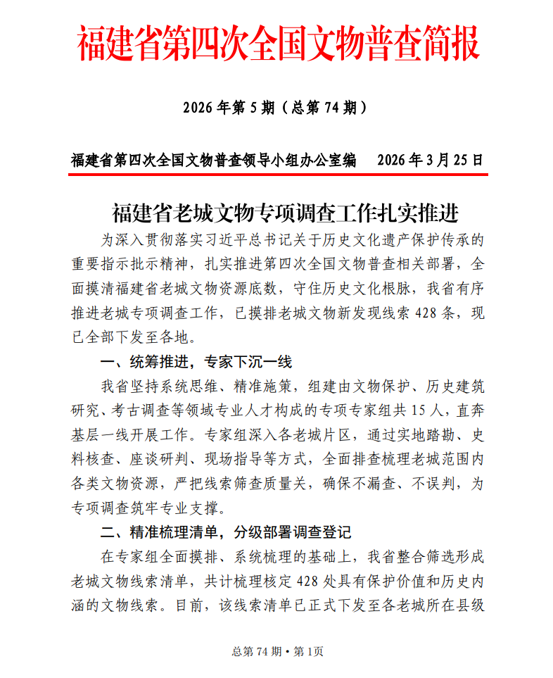 福建省第四次全国文物普查简报(26年第4期)