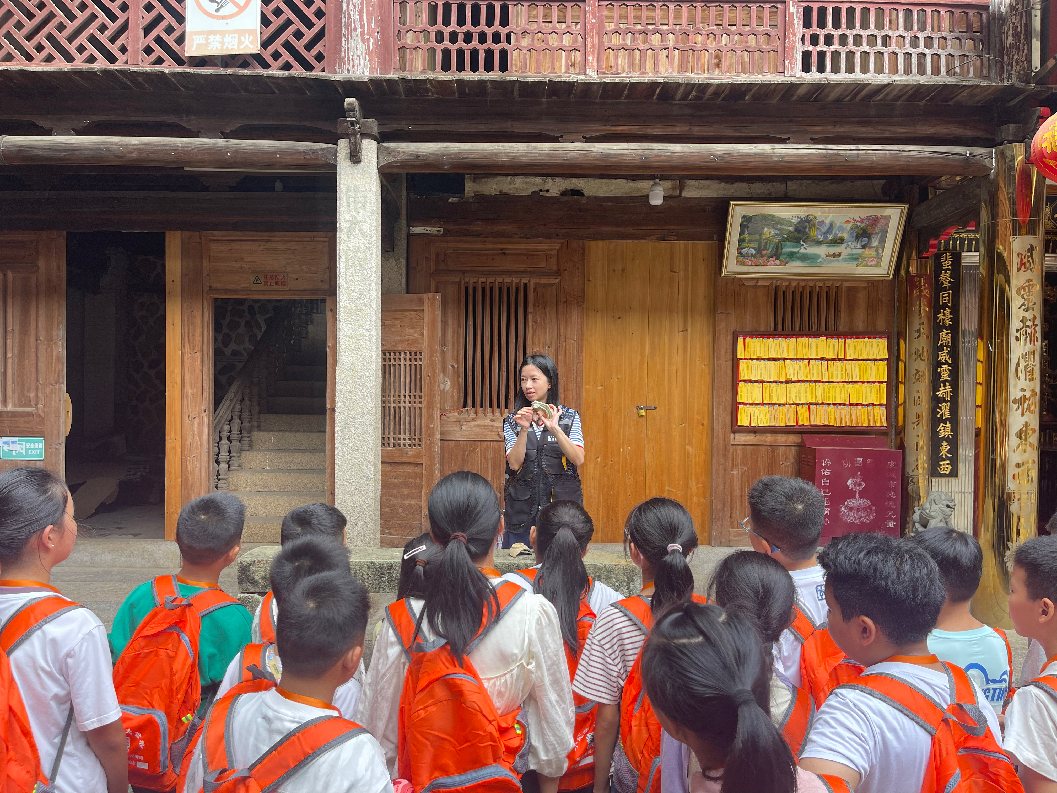 文物普查员在金淘镇进行四普调查时,组织带领学生实地参观了省级文物保护单位金淘书院和聚奎楼,详细地向同学们介绍了每一处文物的建筑形制、历史背景,向同学们讲述了文物保护背后的故事,近距离感受这两座有着百年历史的文物建筑。普查员还通过对比展示了文物随着时代变迁而产生的变化,同学们深刻认识到文物的不可再生性和珍贵价值。