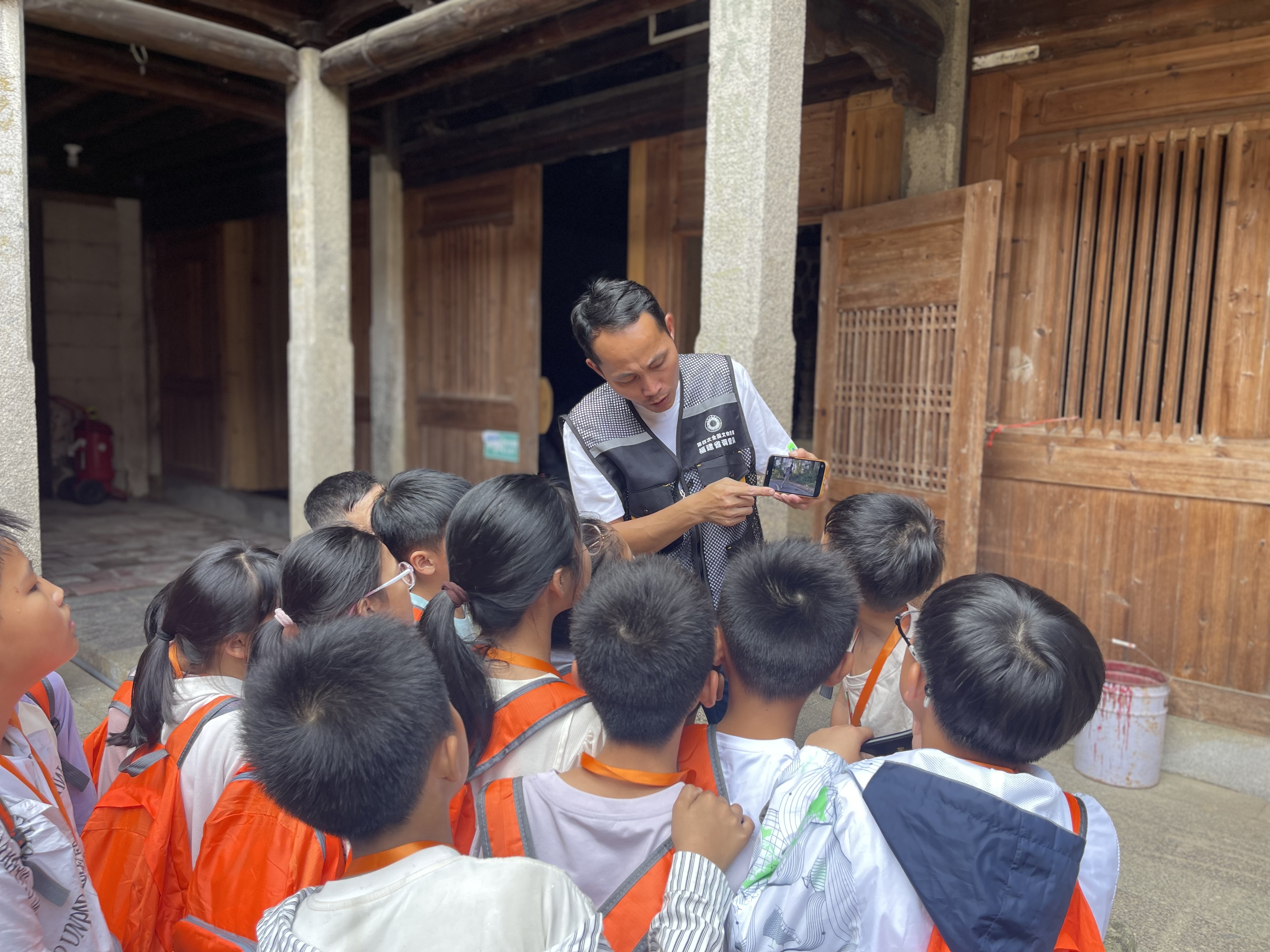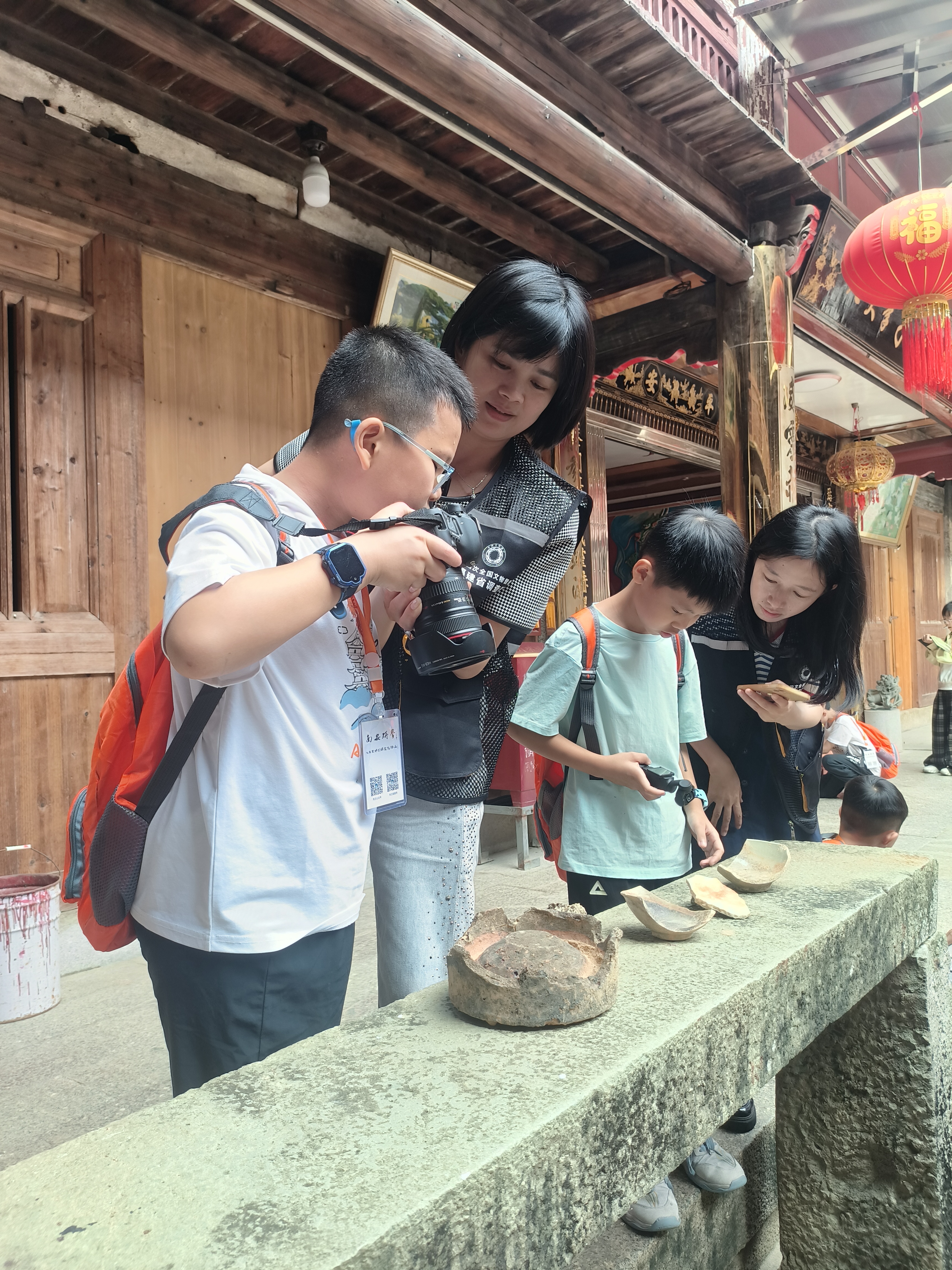 为了让同学们更加了解“四普”的主要任务和工作内容,文物普查员向群众讲解了南安“四普”的工作现状和进展,一一介绍了普查所需用到的相机、无人机、手持RTK等设备,展示了如何使用专业软件进行文物信息采集,如何使用文物普查仪器进行测量、拍照等。在工作人员的指导下,同学们化身“四普体验员”,全神贯注地投入到文物拍摄与测量的实践当中。这种沉浸式体验不仅让同学们更加深入地了解了四普工作的具体内容和要求,也进一步激发了他们对文物保护事业的热爱和责任感。