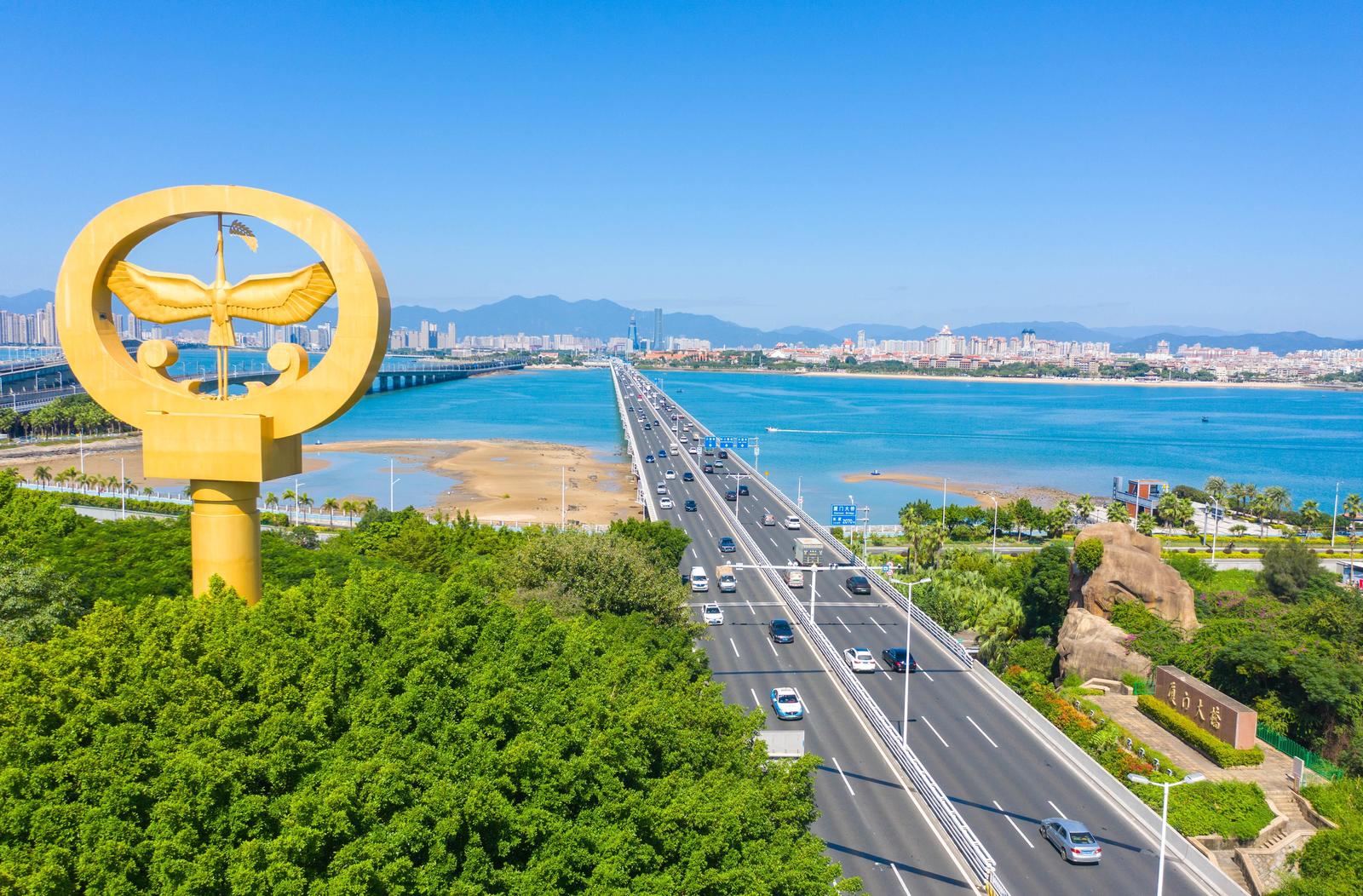 据介绍,1991年,我国第一座跨海公路大桥——厦门大桥建成通车。离桥头不远处,立着一把高23.5米的金钥匙雕塑。