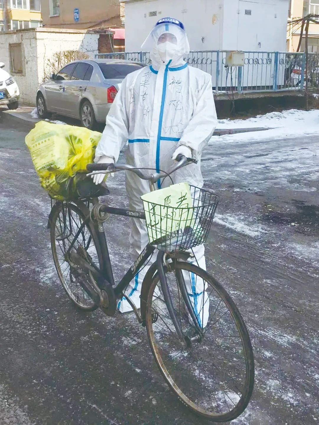 哪里有疫情,哪里就是战场。下沉社区,没有车辆,褚松松借了一台老旧自行车,修理一下,叮叮当当骑着去做志愿服务,为小区居民运送物资;没有电梯,他扛着物资,挨家挨户敲门送;核酸检测中配合维持秩序,拿着扩音器一遍一遍喊着居民下楼做核酸。为了解决扫码时手机屏幕反光问题,褚松松自制扫码箱,大大提高了工作效率。风雪中一站就是一天,每天在岗时间10多个小时,工作虽然琐碎辛苦,他却毫无怨言。