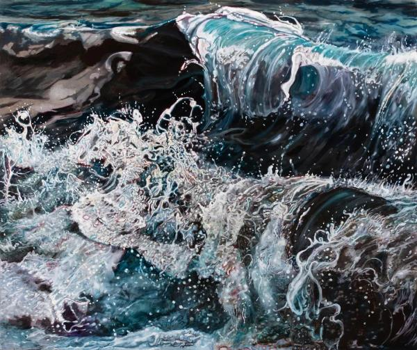 海洋的潮来潮去亘古不变,却见证着人类历史的变化。展览中一幅油画呈现浪花翻涌卷起的白色泡沫,有个奇怪的名字《37°56´n - 23°35´e》。这幅由迪米特里斯·查莫拉尼斯创作的油画现藏于希腊海事博物馆,灵感来自地中海及周边地区的历史,作品标题均是历史事件发生时的地理坐标。《37°56´n - 23°35´e》的标题来自于历史上“萨拉米斯海战”的地理坐标,这场公元前480年的海战,希腊人以少胜多,成为第二次希波战争的转折点。