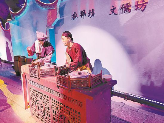 跟随着金鳌、银鳌,前行进入第二篇章“坊巷情怀”。马鞍墙下、坊巷之间,叫卖声此起彼伏,“开闽圣王”王审知、编户植榕的太守张伯玉,以及林则徐、严复、林觉民、冰心、林徽因等人的讲述,让观众切身感受到“一片三坊七巷,半部中国近代史”。