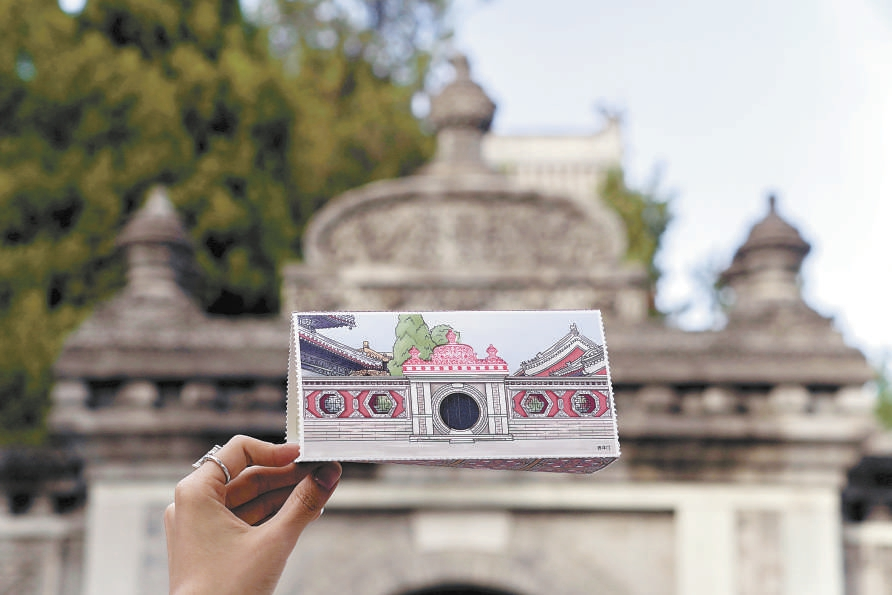 北京艺术博物馆结合万寿寺内建筑和文物元素设计的集章明信片