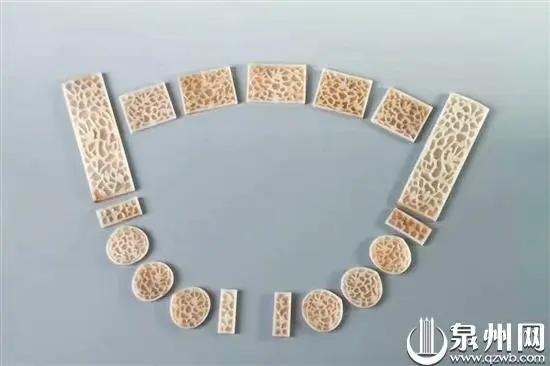 记者通过南安市博物馆提供的图片看到,这些玉带板器表光洁,雕工精细,共有17件。其中左右小方2件,长条形,正面雕刻花鸟纹,背面分别有2对“V”形联孔;桃形銙(kuǎ)6件,正面雕刻花鸟纹,背面分别有3对“V”形联孔;辅弼2件,长条形,一件正面雕刻花鸟纹,另一件正面雕刻花卉纹,背面均有2对“V”形联孔;尾2件,为一端微弧的长方形銙,正面雕刻龙纹及花鸟纹,背面各有5对“V”形联孔;排方5件,为后排的长方形銙,正面雕刻龙纹及花鸟纹,背面各有4对“V”形联孔。