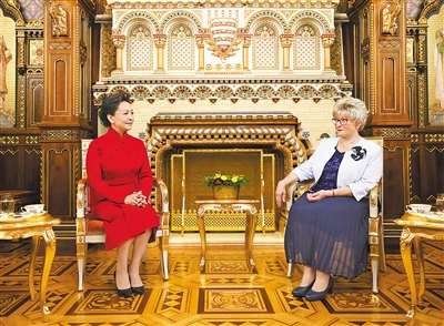 当地时间5月9日上午,国家主席习近平夫人彭丽媛在布达佩斯应邀同匈牙利总统舒尤克夫人纳吉共同参观布达王宫并茶叙。