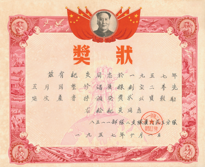 1957年8511部队颁发的整修鹰厦线立功奖状