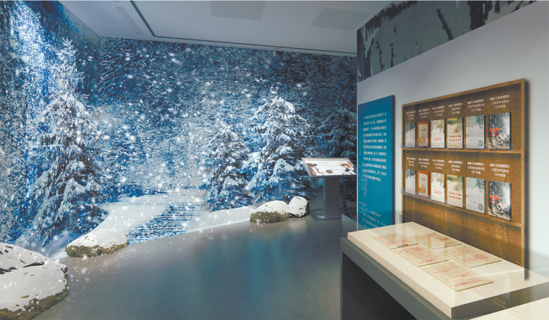 展览分为两个部分,第一部分为“三红一创、青山保林”。“三红一创”即《红日》《红岩》《红旗谱》《创业史》,“青山保林”指《青春之歌》《山乡巨变》《保卫延安》《林海雪原》。这些作品以深刻的思想内涵、生动的人物形象和波澜壮阔的历史画卷,成为中国当代文学史上的不朽丰碑。展览不仅展示了七部经典作品的珍贵手稿,还辅以模型、动画、影片、电子地图等多媒体手段生动回顾这些光辉篇章,旨在深切怀念那些为了理想与信念不惜一切代价的文学先驱和英雄们。让我们在这些经典作品的引领下,不忘初心、牢记使命、砥砺前行,为以中国式现代化全面推进强国建设、民族复兴伟业贡献自己的力量。
