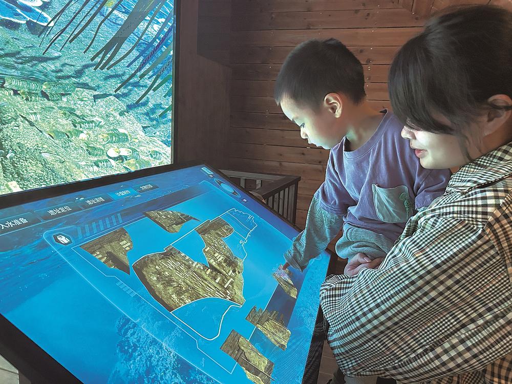 海丝厅成为亲子游热门打卡点,市民体验裸眼VR水下考古游戏。