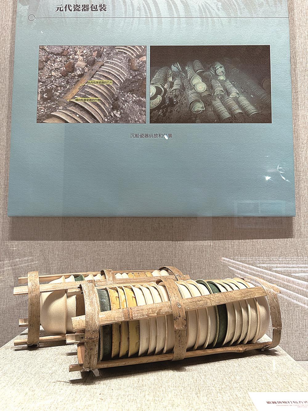 “这艘海船的船舱内多是成摞的瓷器堆积。纵向包装瓷器的是竹片,横向包装瓷器的是竹篾。”李海梅说,哪怕是沉船瓷器码放和包装方式,也要据实还原。