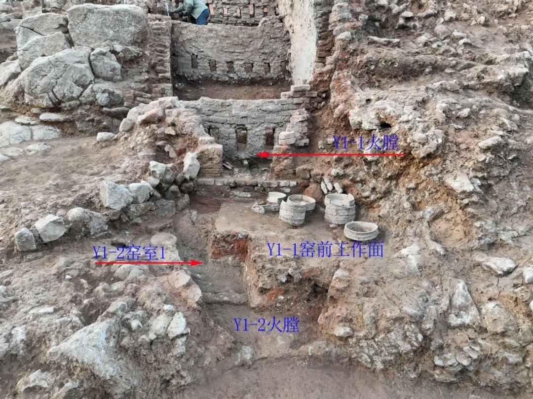 从ⅠY1-1(晚期)窑室1起券高度来看,各窑室应该为单独起券,属连房式窑。