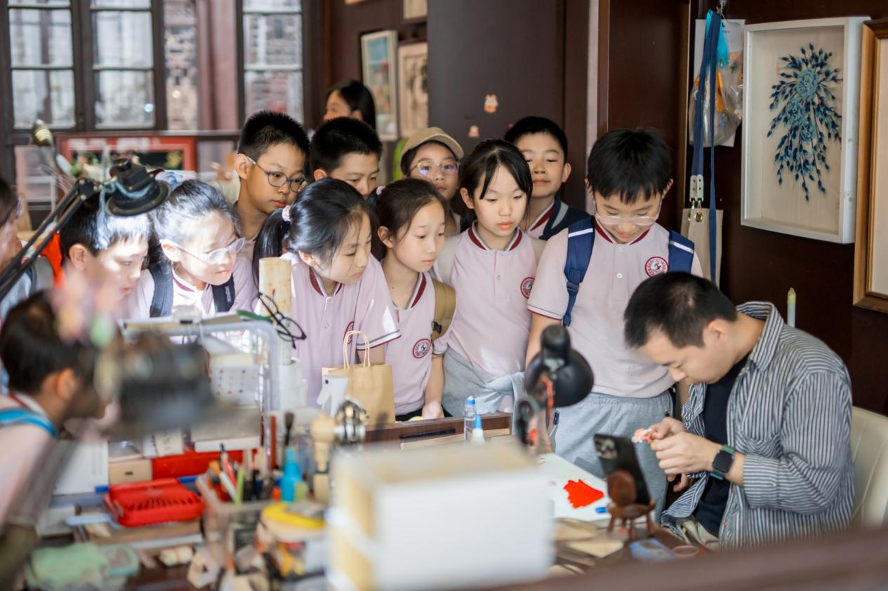 小朋友在南京市民俗博物馆观摩非遗作品制作
