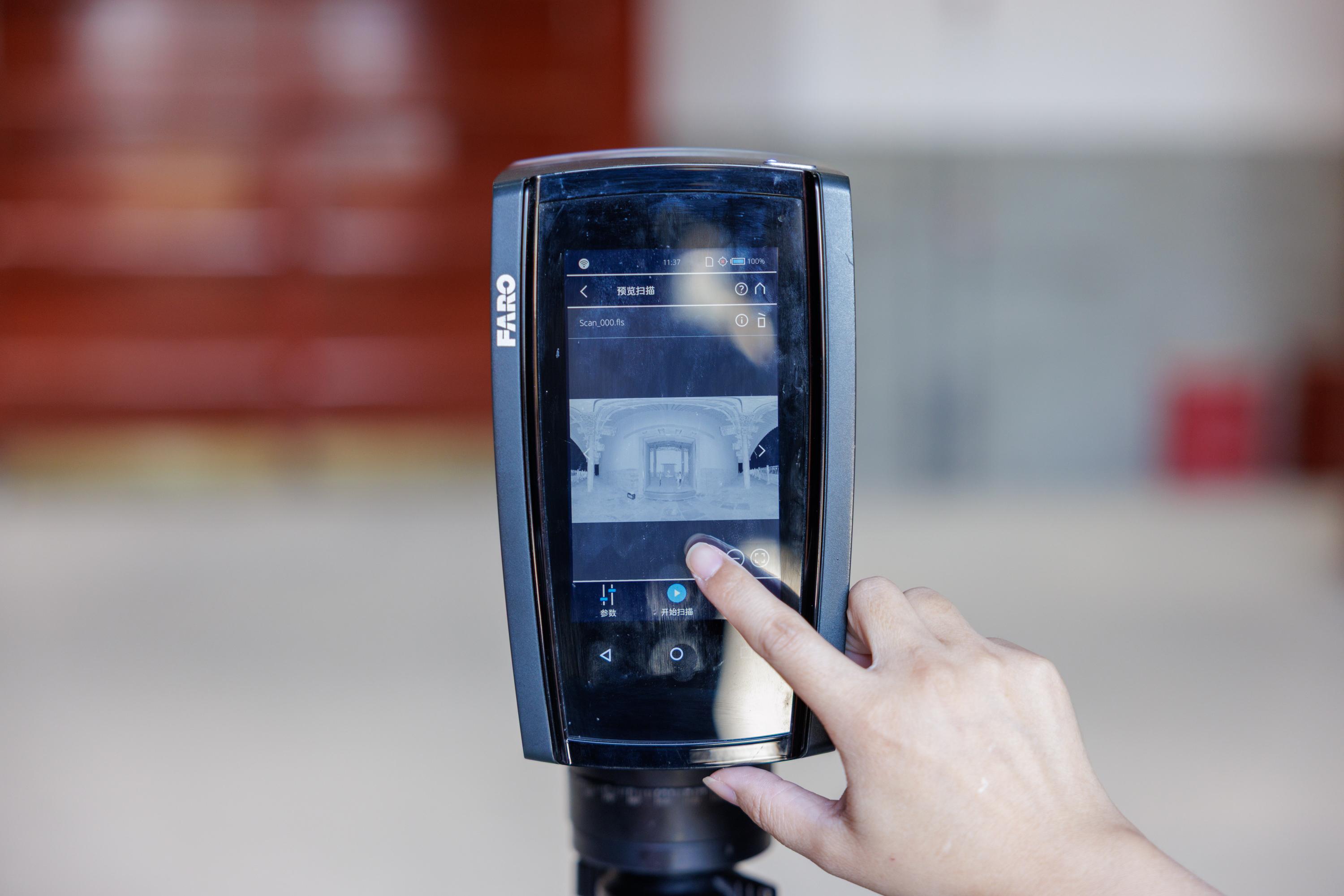 北京正阳门,数据采集设备显示刚刚采集的影像。新京报记者 王子诚 摄