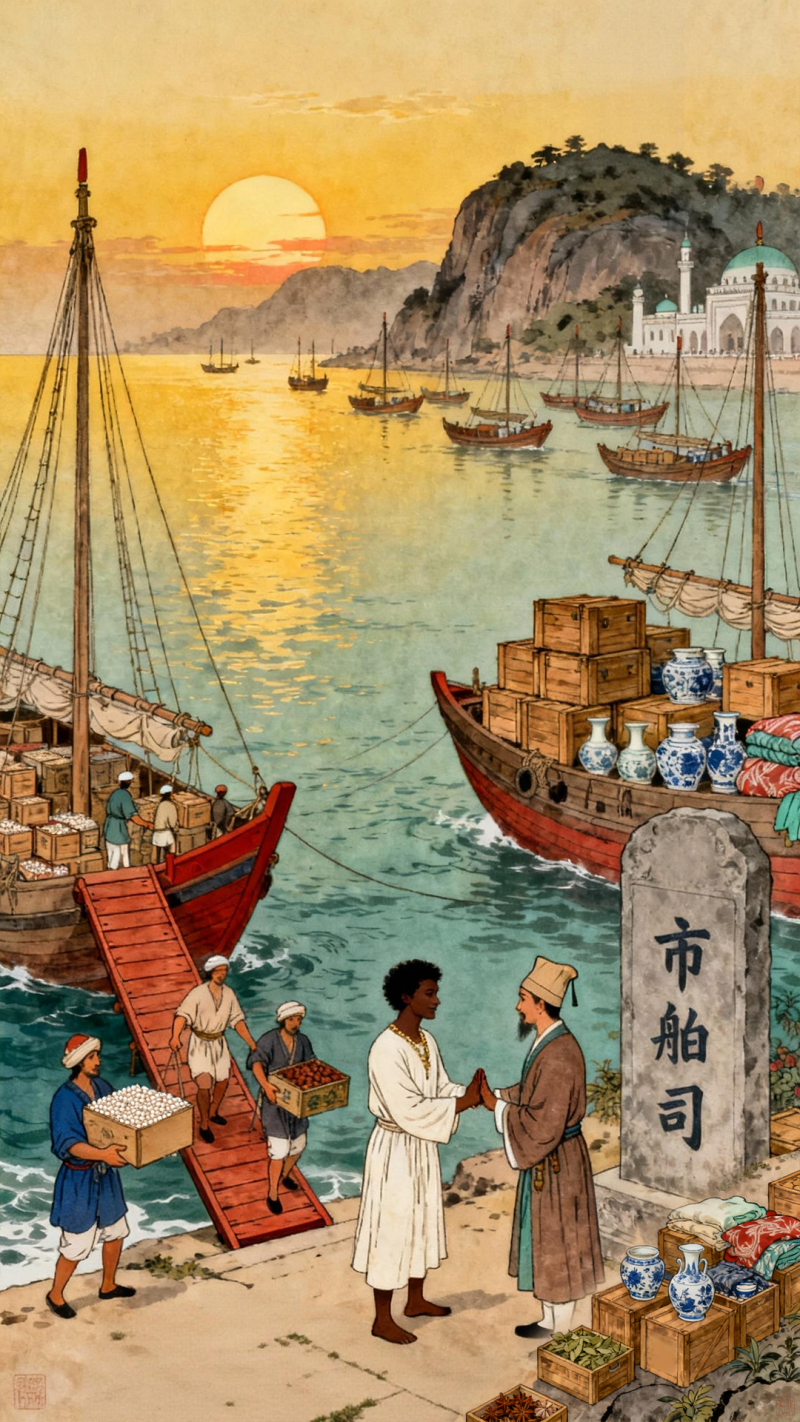 宋元泉州港与古锡兰海上丝路交易(AI制图)