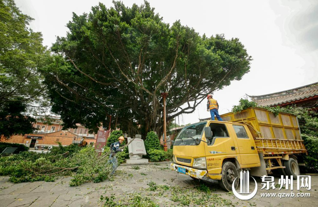 据了解,这些古树每年都会进行基础养护与修剪,这次修剪是近3年来最大型精细作业,文庙内的2棵百年榕树则是近6年来最大型修剪。本次古树修剪作业期间,府文庙正常开放。在文庙内的榕树修剪现场设置有安全警戒线与施工提醒,请市民游客切勿进入或靠近作业区域。