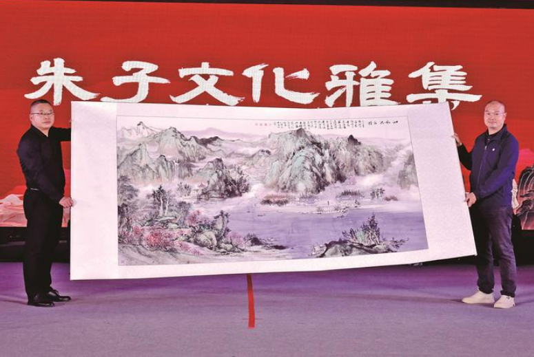 “东周出孔丘,南宋有朱熹。”晚会现场还特别设置了“泗水-尤溪”双城艺术交流画作赠送环节。这幅由山东泗水与福建尤溪两地画家共同创作的绘画长卷《泗水沈水情》,将泗水与尤溪的地域山水特色、人文底蕴融于尺幅之间,见证两地文化情谊。