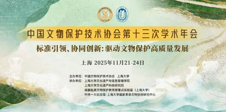 11月21日至24日,中国文物保护技术协会第十三次学术年会在上海市举办。年会设有主会场和五个分会场,主会场邀请文保技术相关各领域专家分享最新研究成果和行业动态;分会场分别围绕“石窟和土遗址的智能监测与精准保护”“文物病害识别与劣化评估技术”“考古出土脆弱质文物保护的挑战与进展”“文物稳定性智能诊断与预警”以及“文物保护技术标准体系构建与实践探索”等议题,展示从基础研究、技术创新到标准构建等一系列最新研究与实践成果。会上,中国文物保护技术协会标准化工作委员会正式成立,将推进协会团体标准研制工作。