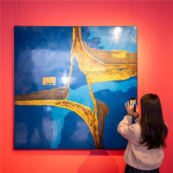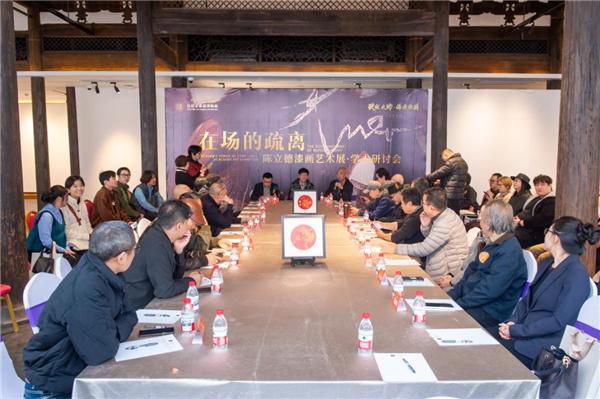 开幕式还同步举行了“在场的疏离”学术研讨会,与会专家学者围绕陈立德漆画艺术中“传统坚守与当代创新”“材料物性与精神表达”“在地性与国际视野”等核心议题展开了深入探讨。同时,展览现场还创新设置“数智互动”与“创意造物”体验板块,推动传统漆艺与前沿科技融合。