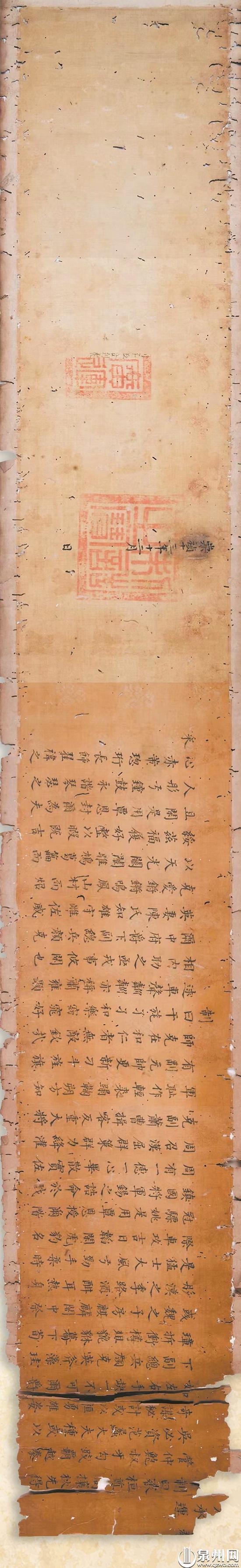 近日,一件经中国闽台缘博物馆5年专业修复的明代诰命圣旨复刻件,被迎回泉州晋江市安海镇西安村颜克英大夫第安奉。这份承载抗夷名将颜克英功绩的历史信物,既延续了家族与地域的文化传承,也见证了泉州文物专业保护的成效。