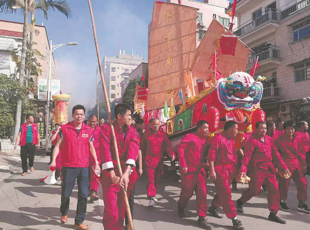 “‘送王船’作为一种禳灾祈福的民间信仰仪式,融合了传统工艺、表演艺术,是人们长期海上生产生活智慧的结晶。”鸿渐村“送王船”民俗文化传习中心理事长许炳宗介绍,“送王船”包含卜选、安栈、请王、王船巡境、做醮、王船化吉等11道仪式。