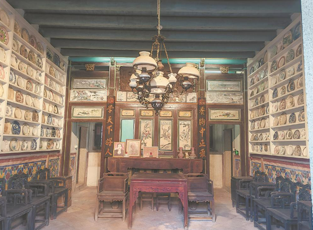 金字招牌、泛黄的侨批、各色瓷器……如今的高阳楼“华侨记忆馆”则是人们了解华侨文化的打卡点。2023年,鸿渐村以合作的形式活化利用闲置的高阳楼,台湾策展团队从海外乡亲手中征集来1000多件老物件,设置侨批馆、华侨影像馆、华侨生活用品馆等,展现华人华侨的开拓精神、爱乡情怀和超越民族国家边界的文化认同。“我们用侨批、瓷器、家具、票据等一件件实物,讲述华侨华人的爱国爱乡情怀以及两岸同根同源的故事,让大家知道根在哪里。”讲解员杨建说。