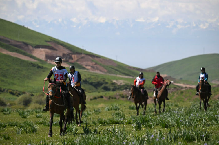 2025年5月30日,中外骑手在2025“丝绸之路”中国超级马术定向耐力赛新疆昭苏站比赛中。新华社记者 胡虎虎 摄